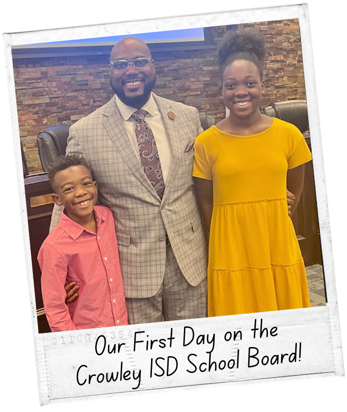 Daryl currently serves as Board President for Crowley ISD, where he’s helped elevate student voice, raise staff pay, and lead the passage of a $1.04 billion bond to invest in local schools. He also serves as Executive Pastor at Inspiring Temple of Praise and as Vice President of Workforce & Career Development at UpSpire—a nonprofit helping people overcome barriers to employment.